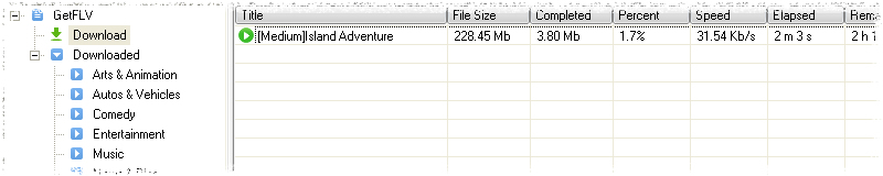 In the FLV Downloader window, you can monitor the process of the download. GetFLV can download your video at up to 10x normal download speeds.